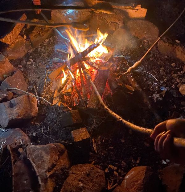 Vom Wetter ließen wir uns nicht unterkriegen und erkundeten jeden Tag ein anderes Märchen. So bauten wir zum Beispiel Frau Holles Haus im Wald oder sammelten Gold beim Rumpelstilzchen.